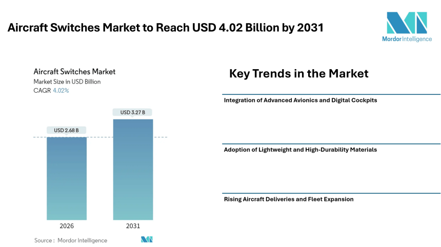 The Balkans News™ > Blog > Press relesaes > Aircraft Switches Market to Reach USD 4.02 Billion by 2031, Supported by Advanced Avionics Integration and Rising Aircraft Production – Mordor Intelligence