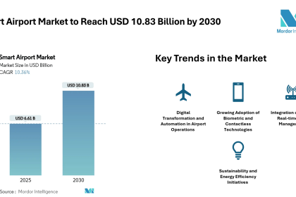 The smart airport market reached USD 6.61 billion in 2025 and is forecasted to reach USD 10.83 billion by 2030,…
