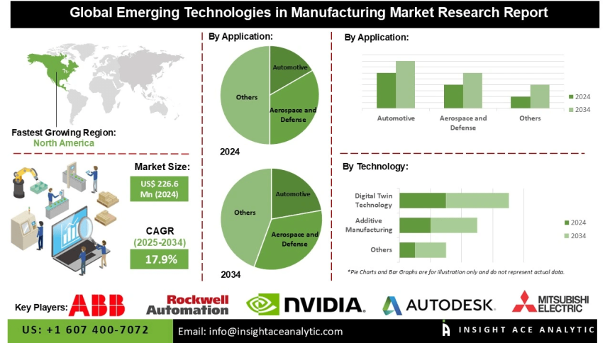 InsightAce Analytic Pvt. Ltd. announces the release of a market assessment report on the “Global Emerging Technologies in Manufacturing Market Size, Share & Trends Analysis Report Technology (Internet of Things, Artificial Intelligence & Machine Learning, Advanced Robotics & Automation, Additive Manufacturing, Digital Twin Technology, Edge & Cloud Computing, Sustainable and Green Technology), Application (Automotive, Aerospace & Defense, Electronics & Semiconductors, Healthcare & Pharmaceuticals, Food & Beverages)-Market Outlook And Industry Analysis 2034″