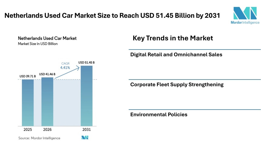 Netherlands Used Car Market Size to Reach USD 51.45 Billion by 2031 Driven by Rising Digital Sales Platforms, Fleet Vehicle Supply, and Changing Consumer Mobility Trends – Mordor Intelligence